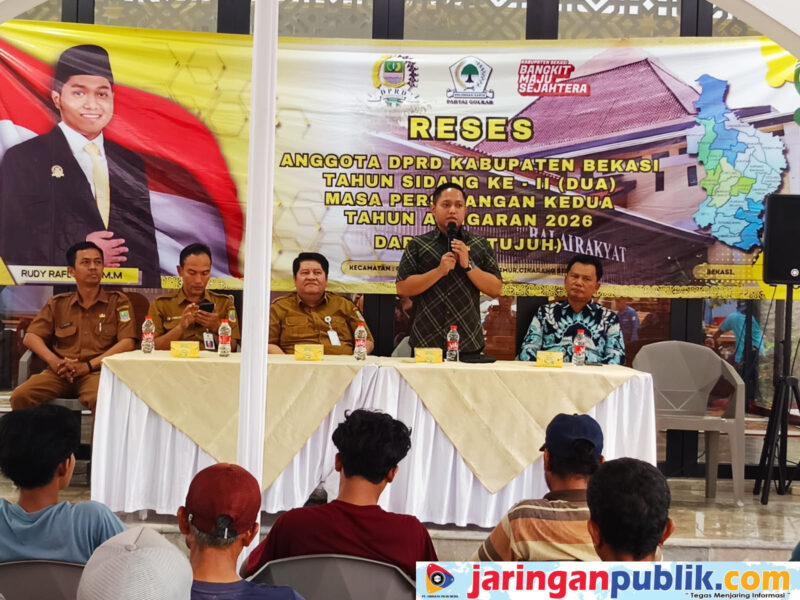 Kabupaten Bekasi – Anggota DPRD Kabupaten Bekasi dari Fraksi Partai Golkar, Rudy Rafly, SE., MM, menggelar kegiatan reses masa persidangan II tahun 2026 di daerah pemilihan (Dapil) VII. Kegiatan tersebut berlangsung di Jalan Raya Citarik Lama No. 18, Desa Jatireja, Kecamatan Cikarang Timur, dan dihadiri puluhan warga yang antusias menyampaikan aspirasi mereka.